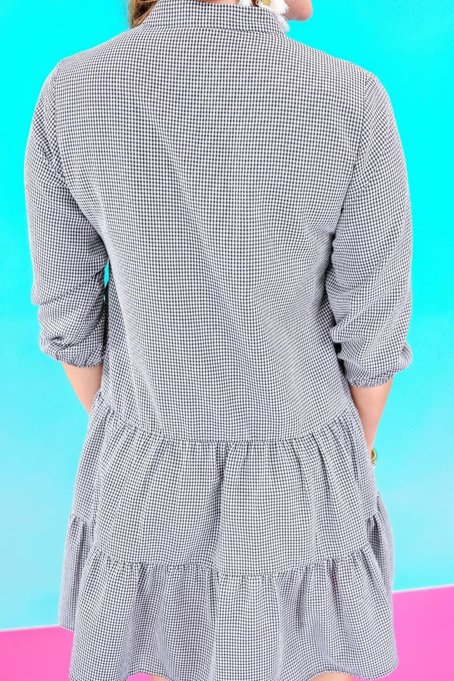 Upgrade your wardrobe with our Classic Gingham Dress. Featuring a versatile gingham print, convenient side pockets, and a stylish button up design, this dress is both fashionable and functional. The tiered silhouette and elastic arms provide a comfortable fit for all-day wear. Be the envy of any event with this must-have dress.