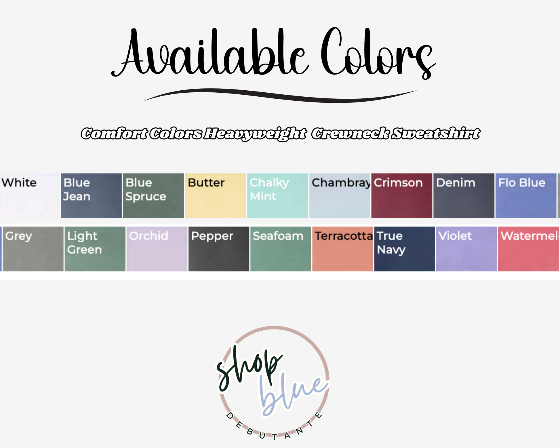 Available in: Shortsleeve Tee (ComfortColors), Longsleeve Tee (ComfortColors), Crewneck Sweatshirt (Hanes EcoSoft)