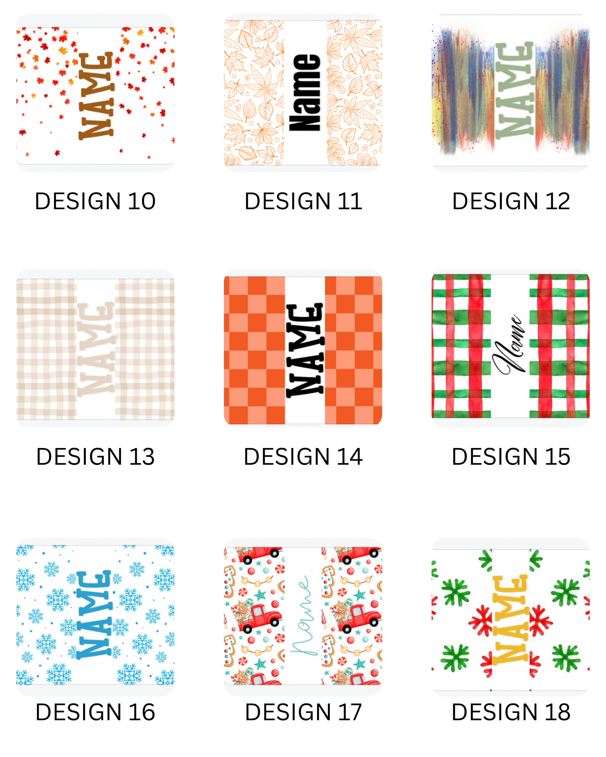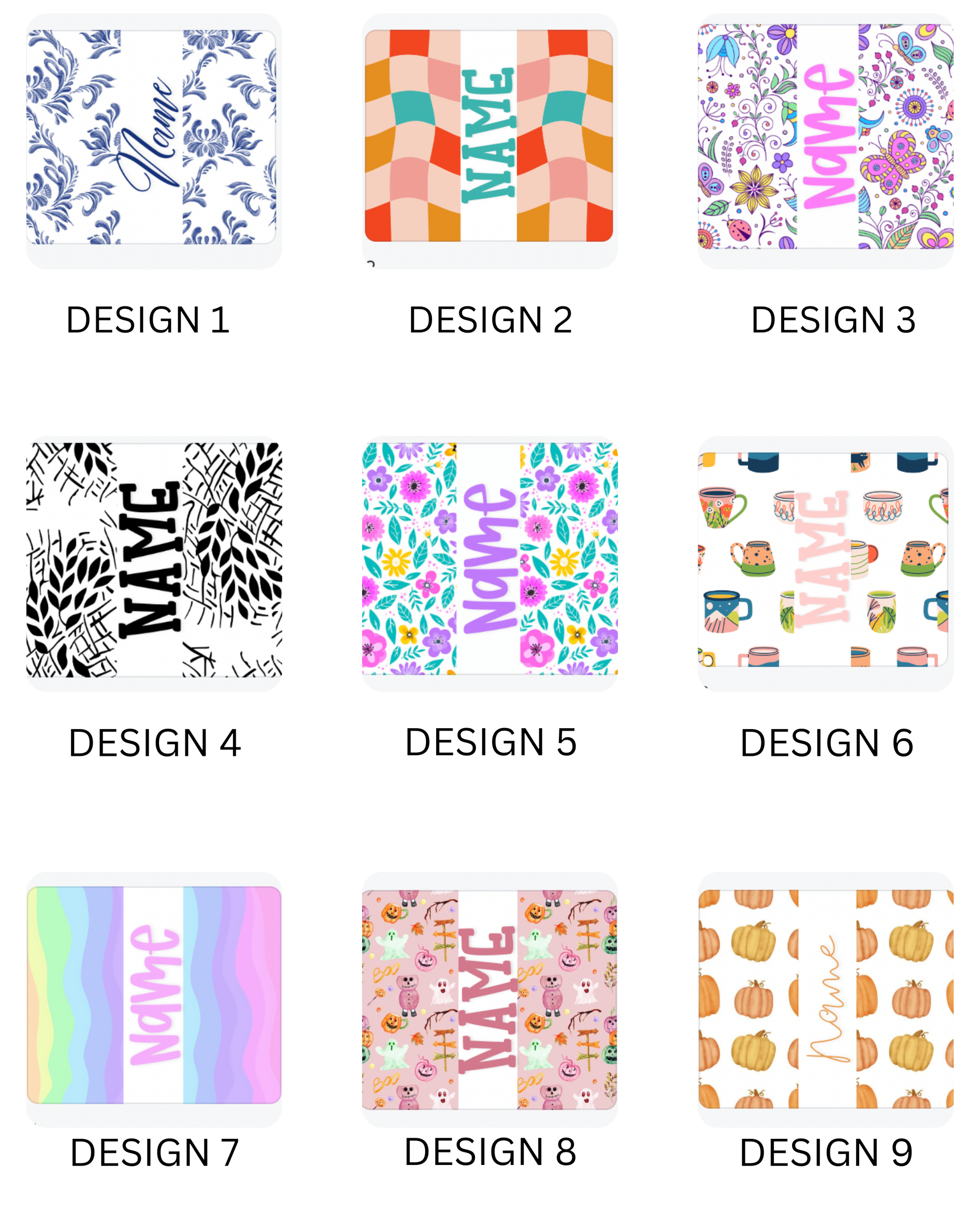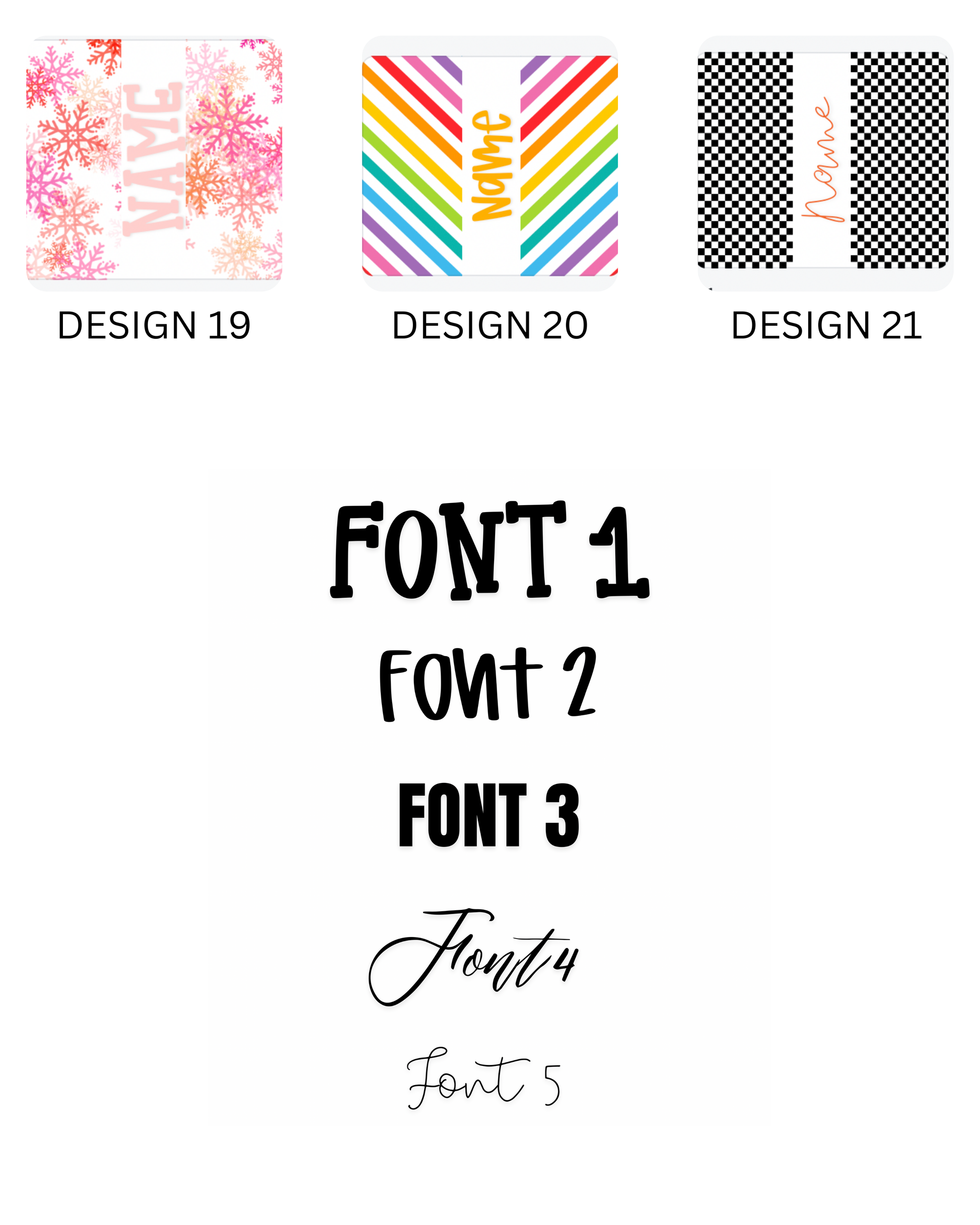 Customer can choose print design, name font, and name