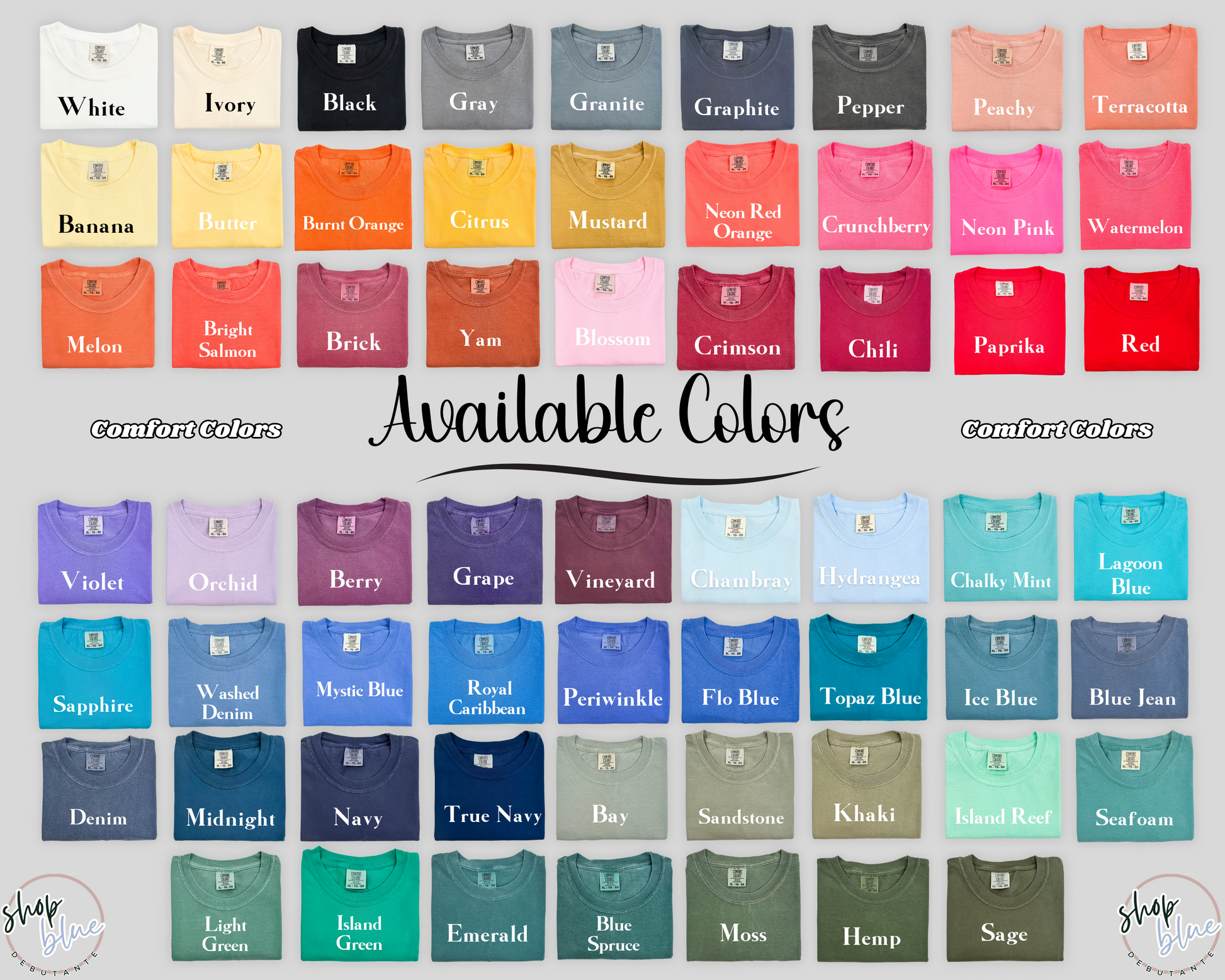 M A T E R I A L: COMFORT COLORS BRAND TEE