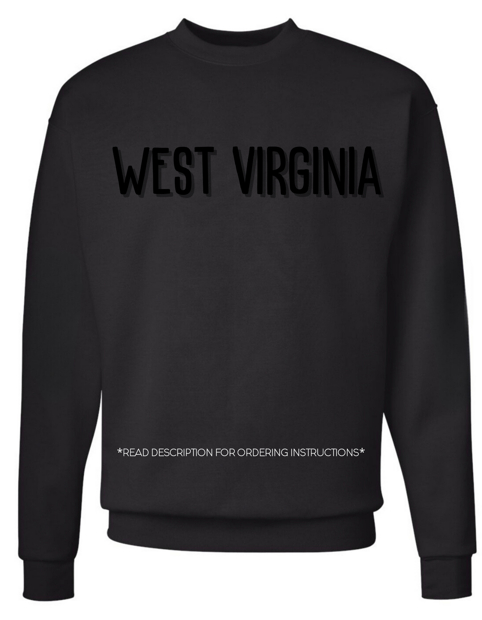 We love the monochromatic look! These Crewnecks will come with either matte black or matte white puff vinyl design of your desired state, school, or team name. Please list school, state or sports team name you want printed on the crewneck in the PERSONALIZATION section below: